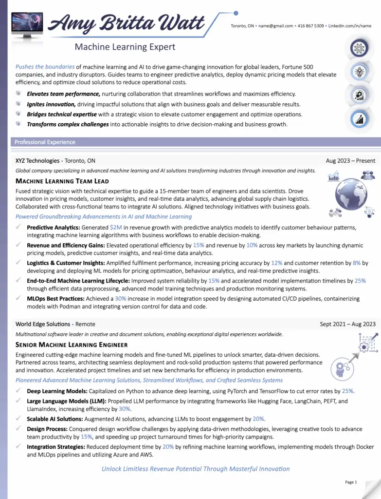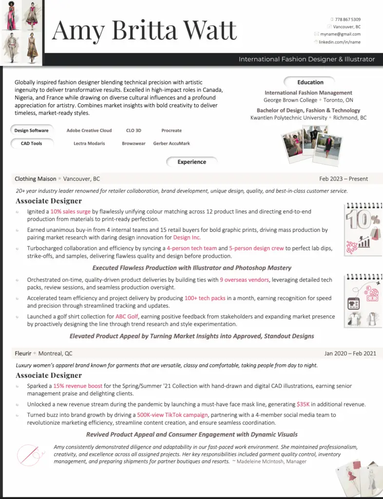 Send your resume to me (email: amy@careermarketingcentre.com) as an MS Word document, and I’ll provide a comprehensive 20-minute recorded video review. I’ll guide you through the strengths and areas for improvement with your resume and my face on screen, delivering personalized insights tailored to your unique skills and experiences.